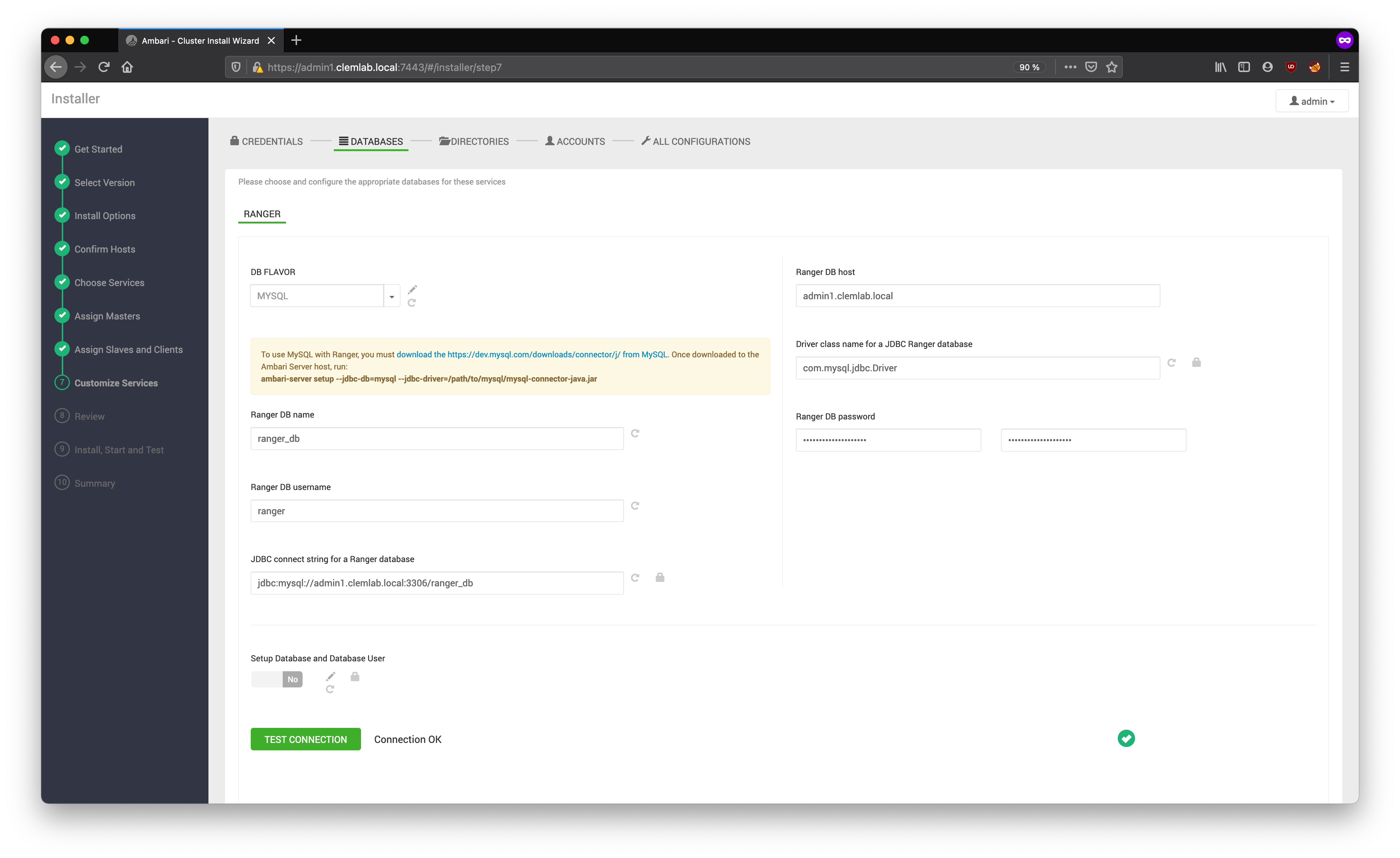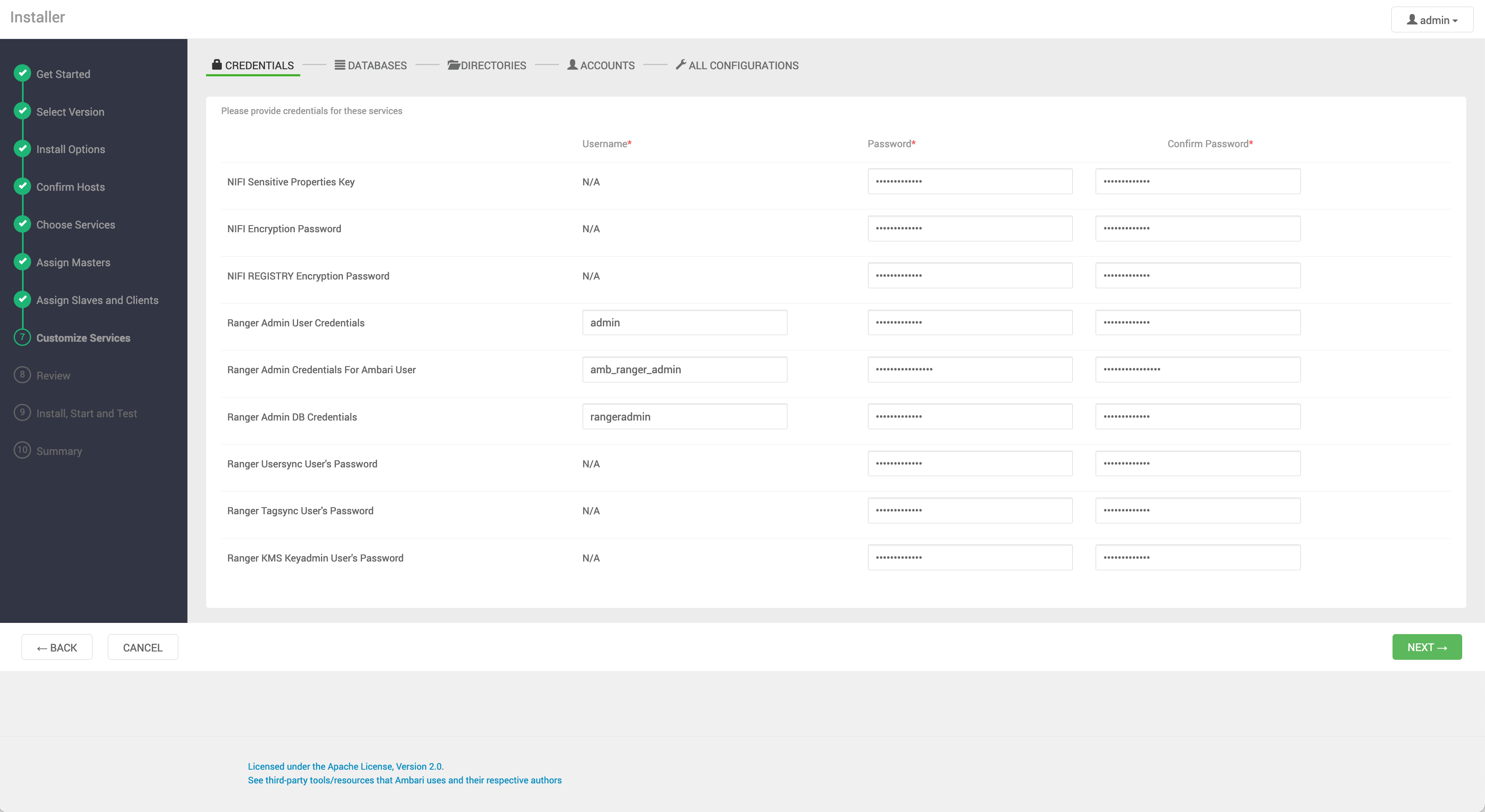 Ambari regroupera les éléments de configuration couramment personnalisés en quatre catégories : Credentials, Databases, Directories et Accounts.